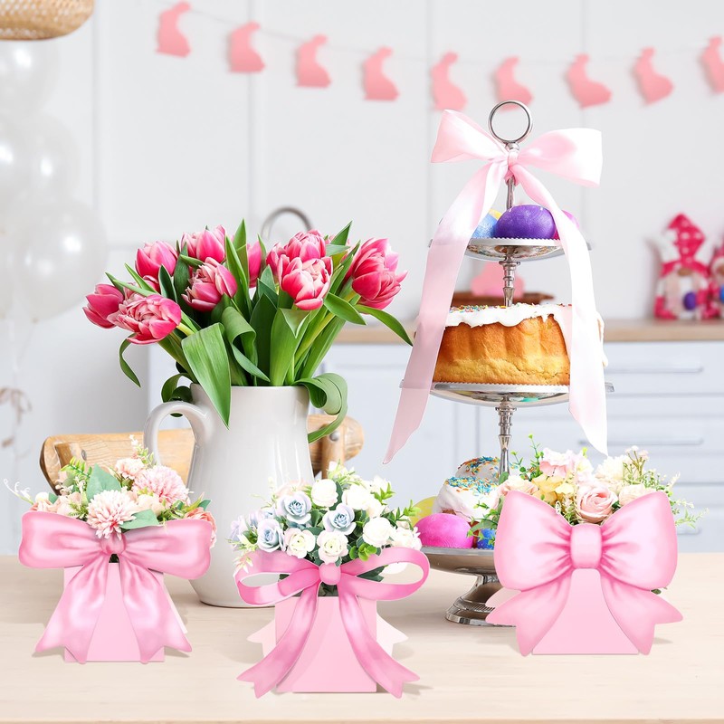 - Cute 3D Bow Pattern: epitomizing creativity, the adorable 3D pink bow design encapsulates a touch of whimsy; It nicely translates attention to detail and a passion for bow themed decor into an engaging, vibrant baby shower centerpieces for tables