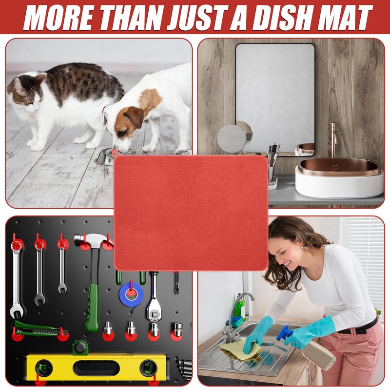 • Multifunctional Features: our multifunctional dish drying mats are impressive not only for drying dishes but also for numerous other kitchen tasks; They can be applied to drain cleaned vegetables, as insulation pads on dining tables, protective pads on washing machines, or pet feeding pads