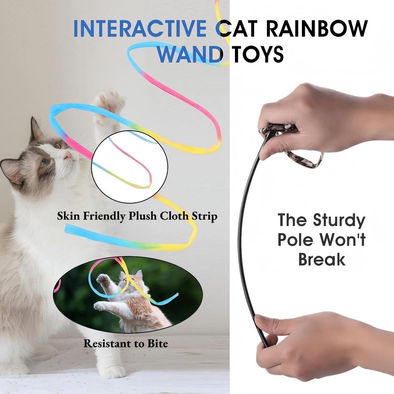 - Perfect Gift Choice: Our cat interactive rainbow wand toys are an ideal gift for the pet lover or your cat which can bring more fun to your cats and the cat lovers. Enjoy hours playing with your cat in a super fun way with just a flick of your wrist! What a great way to keep your cat healthy and fit for life!
