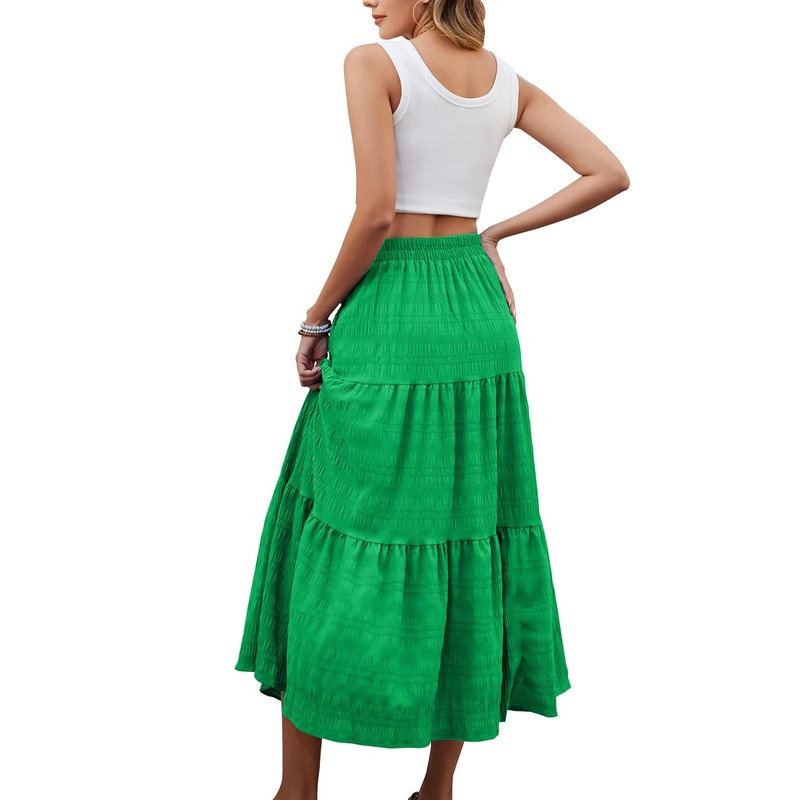 HUSKARY Spring Skirts for Women 2025 Trendy Summer Smock Elegant Teacher Skirts Loose Flowy Peasant Skirt,Green,X-Large
