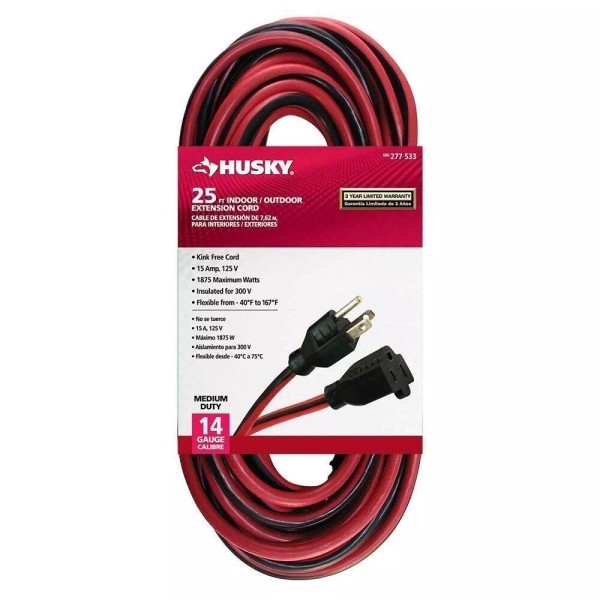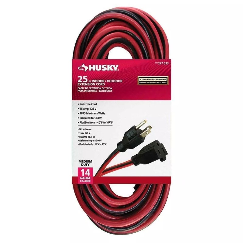 Husky 25 ft. 14/3 Extension Cord, Red with Black Stripe