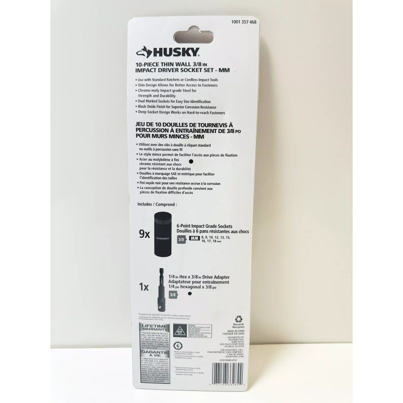 Husky Deep Metric Thin Wall 3/8" Drive 10 Piece Socket Set 8-18mm 1001357468