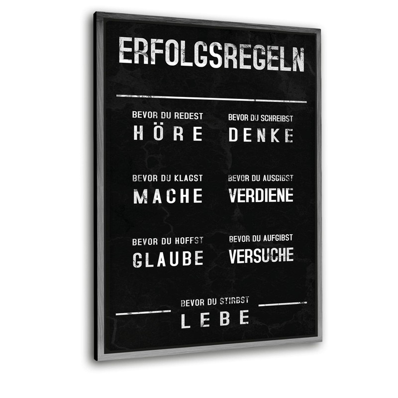 Hustling Sharks® Motivational Pictures XXL Wall Picture Success Rules - Portrait Format (Canvas with Frame Silver, 60 x 90 cm), Pictures Office, Success Picture, Pictures Saying, Wall Decoration