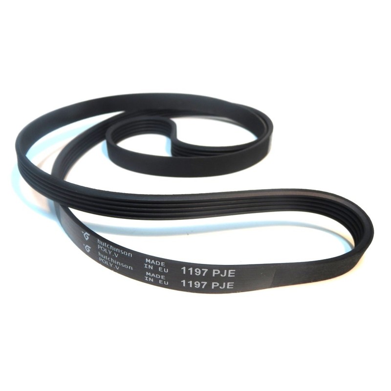 With drive belt ribbed, 1197 milimètres development, with the function to stop the movement of the motor in the drum washing machine. It is installed to the-Wash at Brands AEG, Corberó, Electrolux, Zanussi, Siltal, Teka, Bauknecht, Ignis, Whirlpool, Admiral, Maytag, Bosch, many other brands. Slotted: Type J/elasticity: PJE/ – Poly.V/Height teeth: 3.3 mm/Width channels: 2.34 mm.