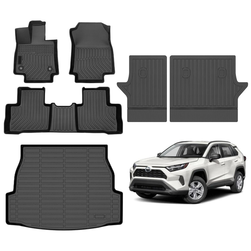 - 【CUSTOM FIT】Hutisya Car Floor Mats and Cargo Liner with Backrest Set are designed specifically for 2025 2024 2023 2022 2021 2020 2019 Toyota RAV4 (Only Hybrid Models). With 3D laser scanning technology,these Car Floor Mats maximize coverage and take into account details such as throttle and brakes to ensure a tighter fit without compromising driving. Products include 2-Rows Floor Mats, Trunk Mat and Backrest Mat.