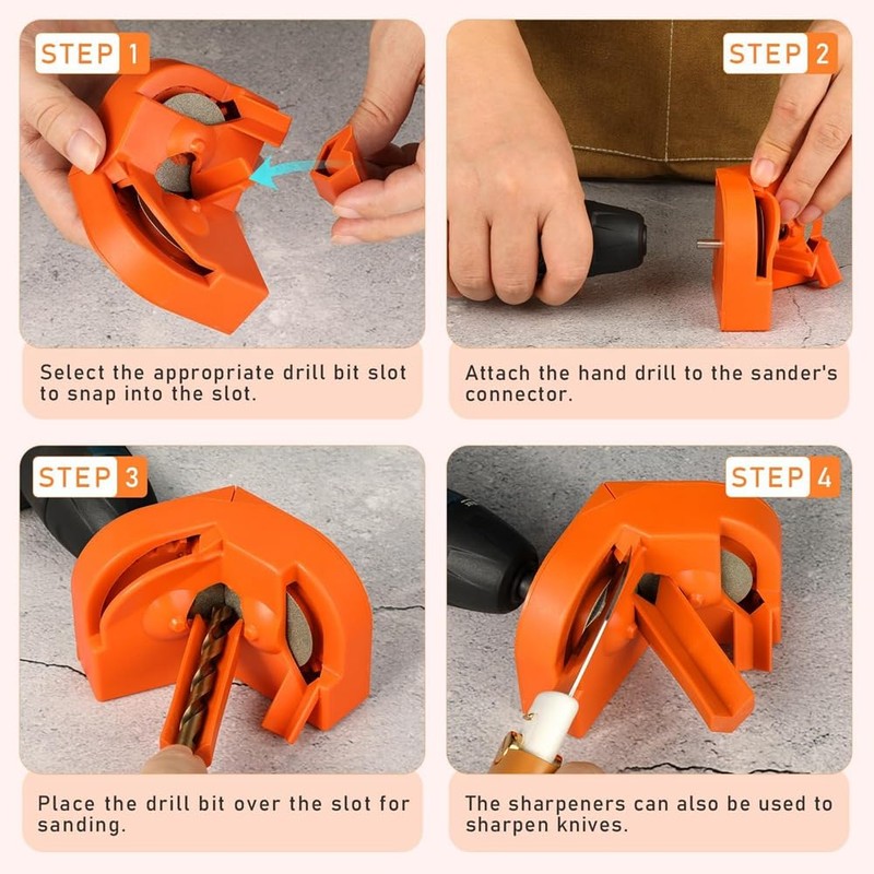 - Easy to use, this multi-purpose drill bit sharpener comes with two diamond abrasive discs and 3 abrasive blocks for sharpening different bits, no use or special skills are required