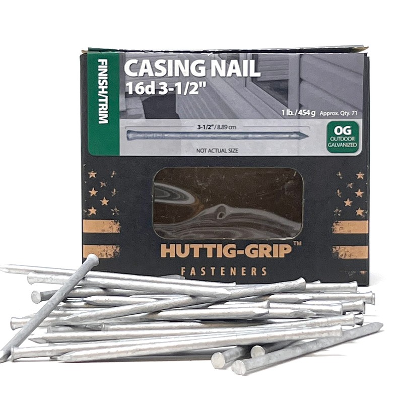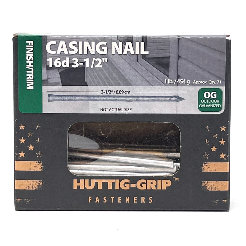Huttig-Grip Finish Trim Series Casing Nail 3-1/2 inches 16d for Window and Door Frame Assembly HGN16OGCAS1 Outdoor Galvanized, 1 lb Pack of 71 Nails