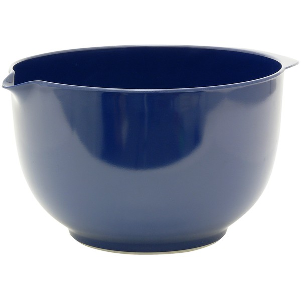 This is the classic, now iconic, melamine margrethe mixing bowl. The heavy wall construction will hold up to the most vigorous mixing. The non-skid rubber ring bottom keeps the bowl in place, just where you want it. A comfortable handle and pouring lip add to the many features that this classic bowl provides. The glossy shine will not wear away, even after years of use. It is heat resistant to 360° F and dishwasher safe. 100% BPA free. Not for use in the microwave. Made in Thailand. Capacity: 2.5 Liters.