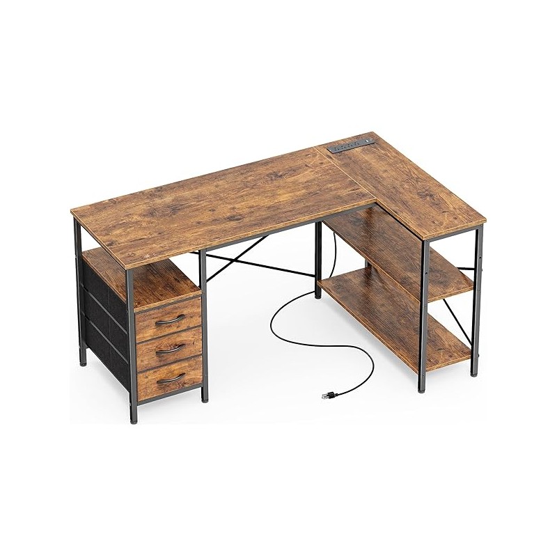 Huuger L-Shaped Desk with Power Outlets, 47" Office Desk with Shelves, Gaming & Home Office Workstation in Rustic Brown