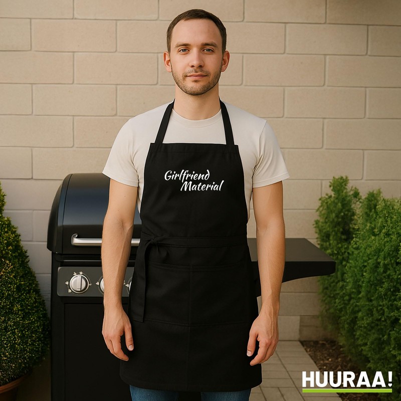 huuraa Apron Girlfriend Material Lettering Unisex Apron Cooking Apron Size with Motif Not Only for Singles Gift Idea for Friends and Family, black