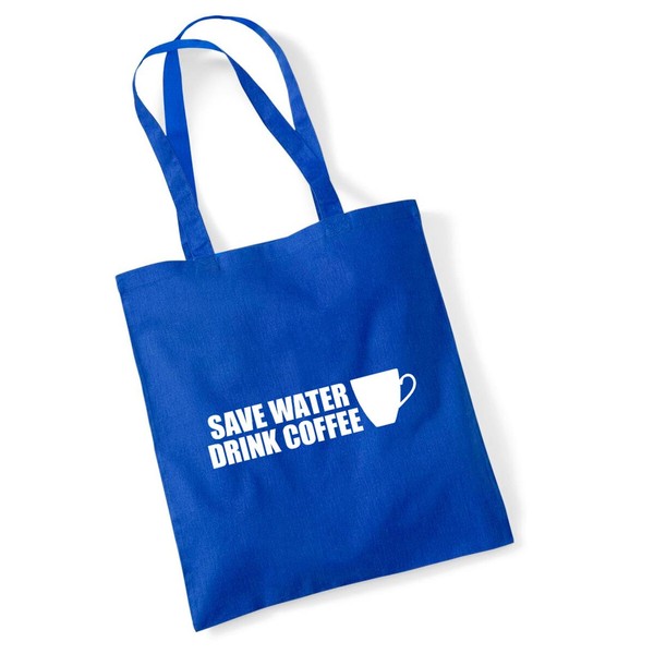 Huuraa Jute Bag Save Water Drink Coffee Coffee Cup Bag Cotton 10 Litre Size with Funny Motif for All Coffee Drinkers Gift Idea for Friends and Family, Bright royal
