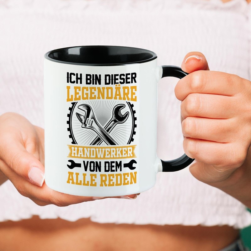 huuraa Kaffeetasse Ich bin dieser legendäre Handwerker von dem alle reden Kaffeebecher Schwarz 330ml mit Motiv für Heimwerker
