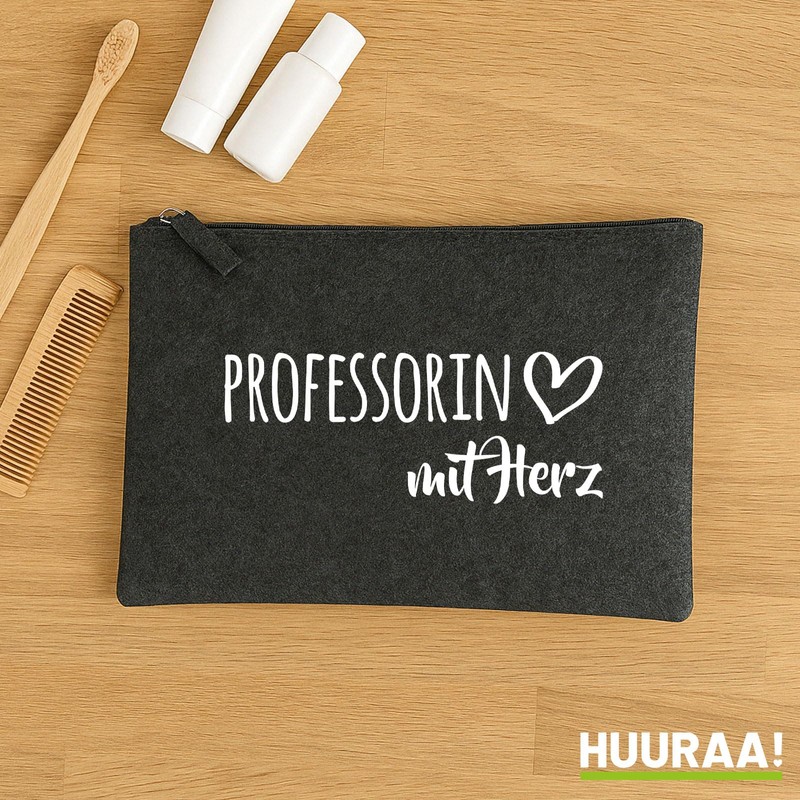 Huuraa Kulturbeutel Professorin mit Herz Geschenk 1 Liter Charcoal Filz Professorin Geschenkidee