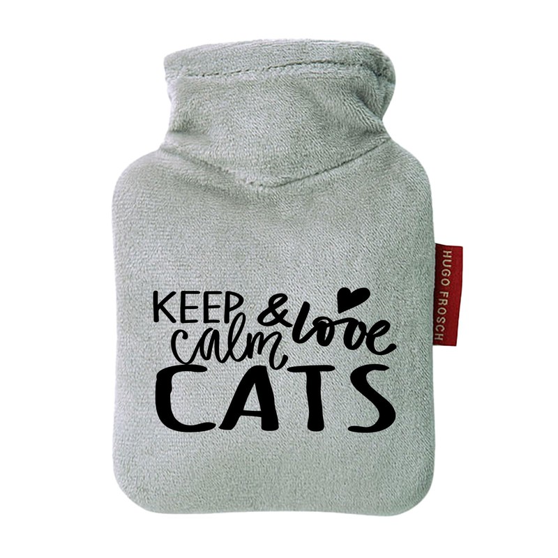 Huuraa Taschenwärmer Keep Calm and Love Cats Geschenk 0,2 Liter Grey Mini Veloursbezug Keep Calm and Geschenkidee