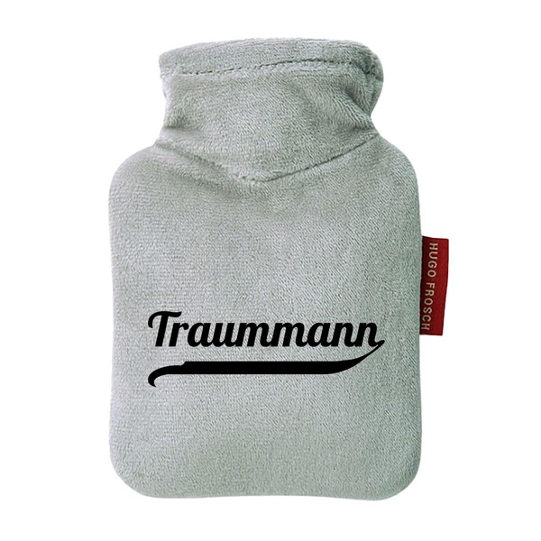 Huuraa Taschenwärmer Traummann Schriftzug Geschenk 0,2 Liter Grey Mini Veloursbezug Traummann Geschenkidee