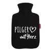 Huuraa Wärmflasche Pilger mit Herz Geschenk 1,8 Liter Black Classic Veloursbezug Pilger Präsent