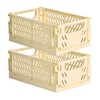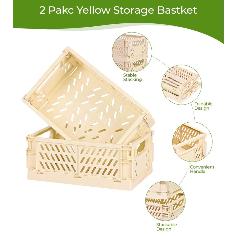 HUUSMOT 2-Pack Small Pastel Plastic Storage Baskets, Collapsible Crates for Organizing, Space-Saving Mini Bins for Classroom, Kitchen, Office, Bedroom (Yellow, 9.8" x 6.5" x 3.8")