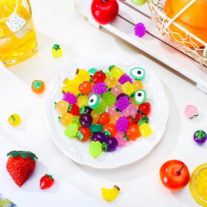 - Package of 60 Luminous Miniatures: discover the joy of collecting with our package that includes 60 luminous miniature fruits in 10 styles; Their mini size and exquisite design will add beauty to your dollhouse, dining room, kitchen, bedroom or garden