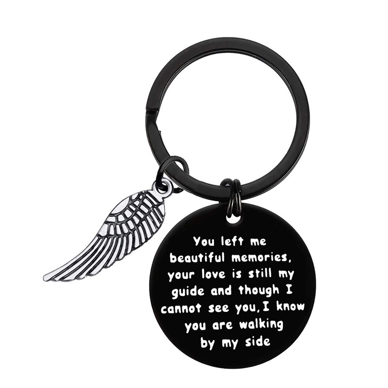 - Memorial Keyring: Engraved with "You left me beautiful memories, your love is still my guide and though I cannot see you, I know you are walking by my side” is a thoughtful gift and a special way to remember someone you love. In memory of gift for the loss of a someone special.