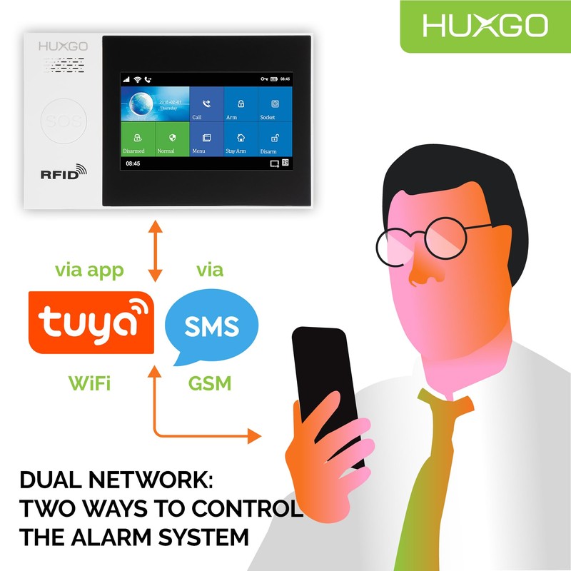- 24/7 CONTROL: Two modules (WIFI and GSM) allow you to control the alarm system at any time from your phone via the TUYA smart mobile application or via text messages. Easy to use: Intuitive alarm software and instructions are available in German and English.
