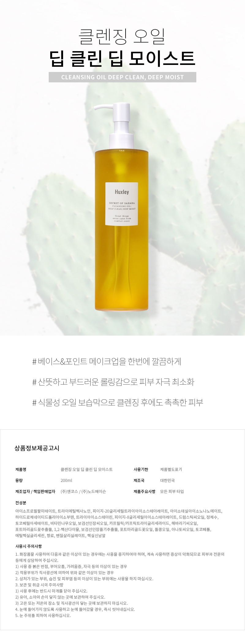 [Huxley Genuine] Cleansing Oil Deep Clean Deep Moist 200ml / [헉슬리 정품]클렌징 오일 딥 클린 딥 모이스트 200ml