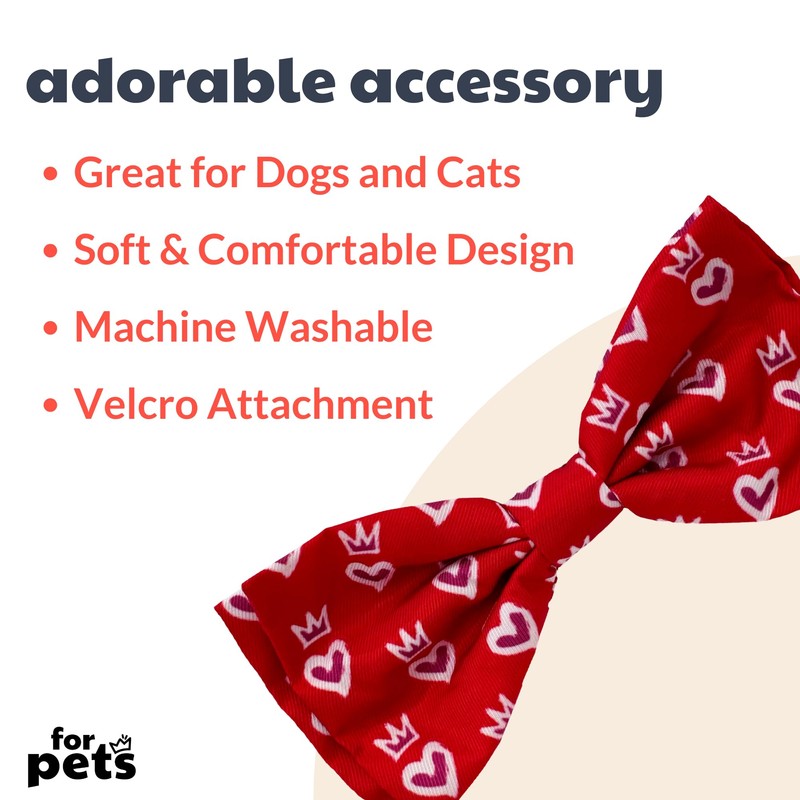 Huxley & Kent Pet Bow Tie for Dogs & Cats - Valentine's Day Adjustable Hook & Loop Collar Accessory - Cute & Comfortable for Holidays & Celebrations - King & Queen of Hearts, Small