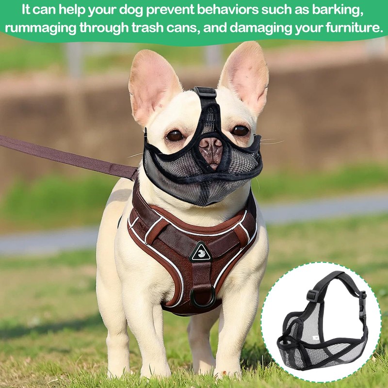 Huybaa Muzzle for French Bulldog, Short Snout Dogs, Breathable & Adjustable, Anti-Biting Chewing Barking, Mesh Dog Muzzle (Black, S)