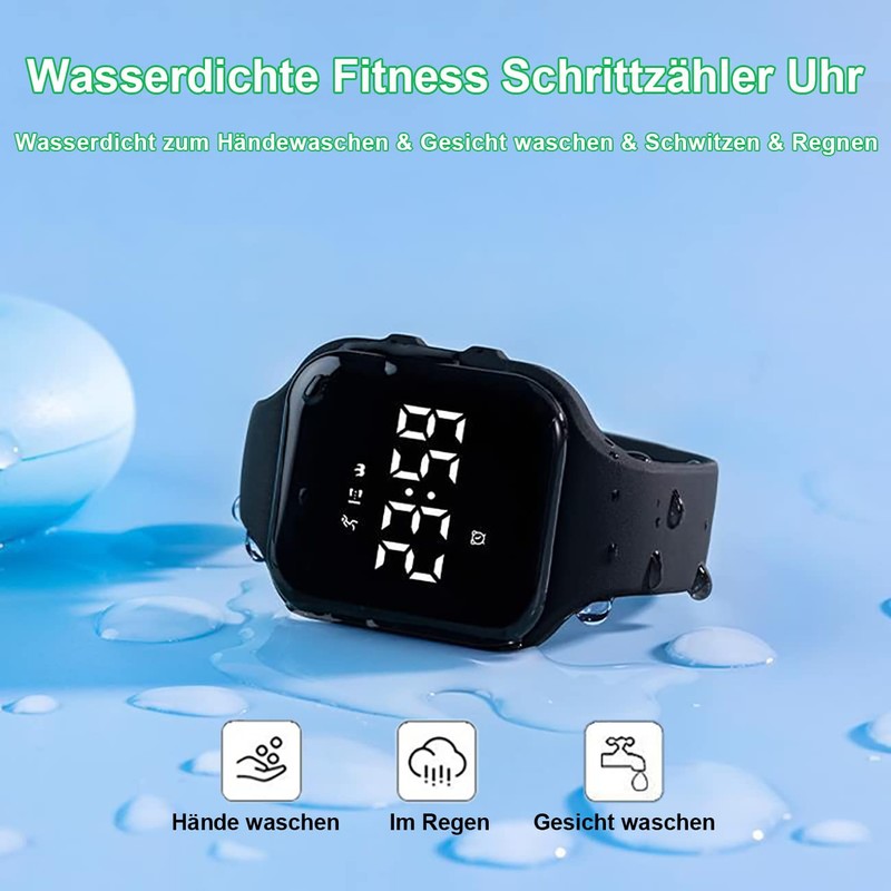 - Easy to use: this fitness watch does not require an app and Bluetooth. No need to connect a smartphone. The large square LED screen shows large and bright content, the display is clearly visible in the dark. The lightweight watch with 2 soft waterproof silicone buttons is suitable for training.