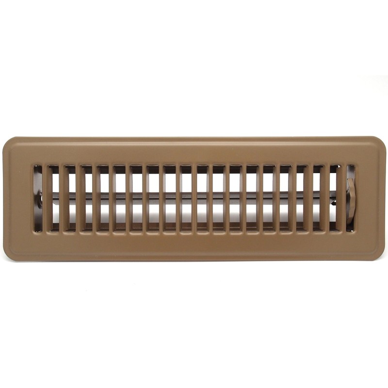 HVAC Premium 10'' X 4'' Floor Register with Louvered Design - Heavy Duty Rigid Floor Air Supply with Damper & Lever - Brown