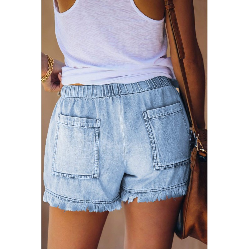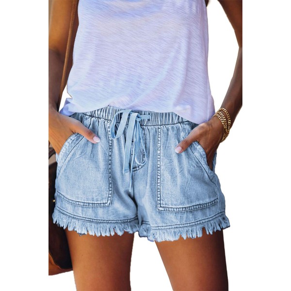 HVEPUO Women's Cotton Linen Shorts, Elastic Band Hot Pants, Summer Wide Shorts, A-light blue