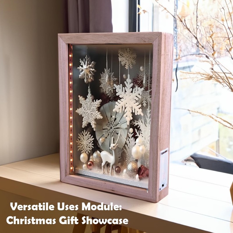 hvfun 8"X11" Rustic Natural Wood Shadow Box with Lights,LED-lit Display case for Wine Corks, Tickets, and Creative Exhibits,Artistic Presentations