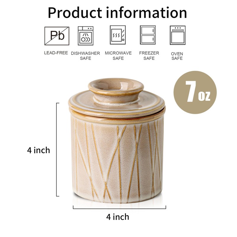 • Easy to Clean: Smooth glaze protects butter crock from stains, making it easy to wash by dishwasher or hand without worrying about breakage and glaze wear. It is safe for refrigerators, ovens and dishwashers.