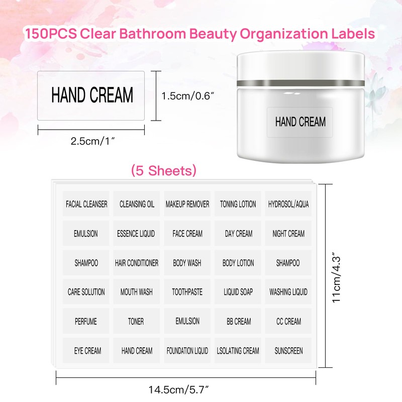 - 【Package Includes】:You will receive 5 sheets travel bottle labels, 150 pcs in total, each sheet contains 30 different skincare and toiletries names. With a wide range of labels included, it is effortless to categorize and identify different items.