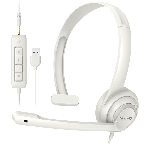 - NUBWO PC Headset with Noise Cancelling Mic, 3.5mm/USB Computer Headset with Detachable surround sound Vol./Mute USB Control, On-Ear Wire VoIP Headsets for casual gaming, e-learning and music