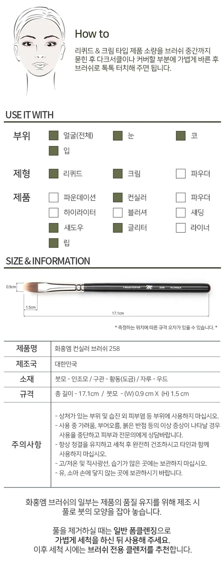 - Product/Model Name: 258 Concealer Brush / 156 Concealer Brush