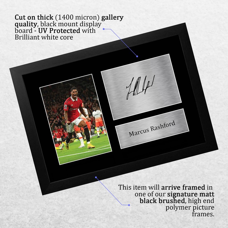 - ✯ A GIFT THEY’LL ACTUALLY LOVE - Score a world-class winner with this signed & framed, printed photo of one of the most famous footballers in the world, Marcus Rashford. Premier present for them and top present-giving points to you – back of the net!