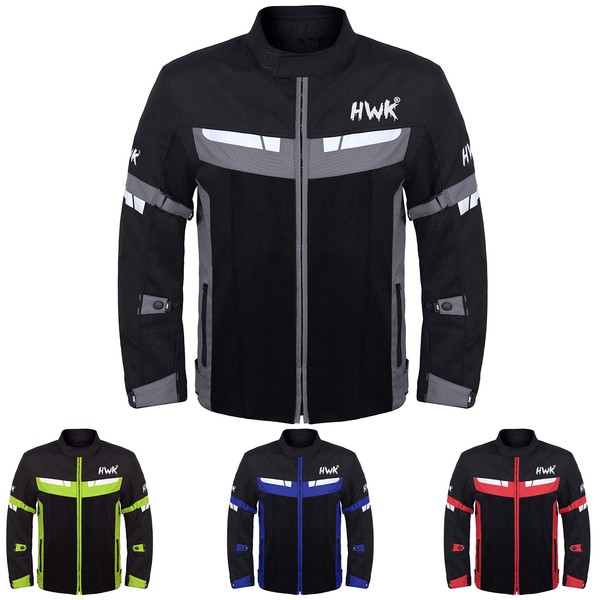 - High Visibility. Our reflective HWK logos and accents ensure that you stand out on the road, even in the dark. Our reflective motorcycle jacket comes in blue, green, or red to further ensure your visibility.