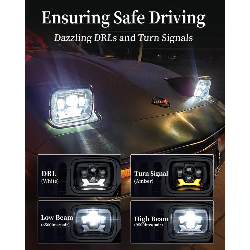 - The Best Value Upgrade Headlights: Super bright ,9500lm/6500lm high/low beam;Best beam pattern on the market: Uniform Light, no blind areas and dim spots;Very Sturdy:5.05 lb/pair; Modern Look,Plug&Play,IP67 wateproof