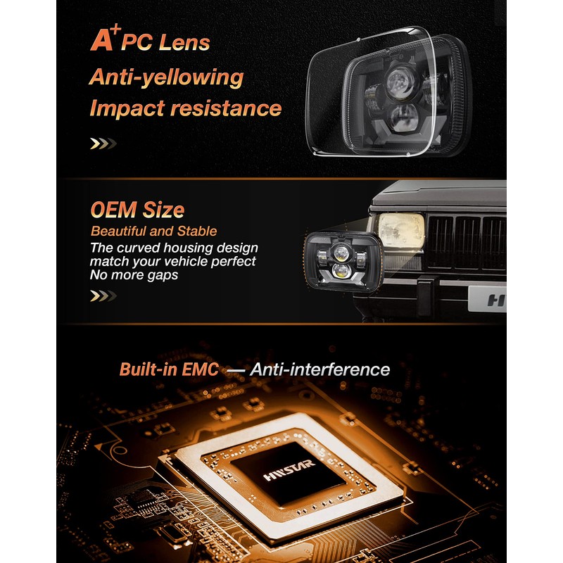 - Fitment: HWSTAR 5x7 Led Headlights fit any vechicles with 5x7 inch ( also known as 7x6 ) Square Headlights, Super cool upgrade for 86-95 Jeep Wrangler yj, 79-01 Cherokee XJ, Ford E-series F-series, C4 Corvette, GMC Savana, Dodge w250 etc (Tips: pls consult us if you not sure whether it fit or not),a few old Japan brand cars need extra relay kitAsin:B089M4DC45)