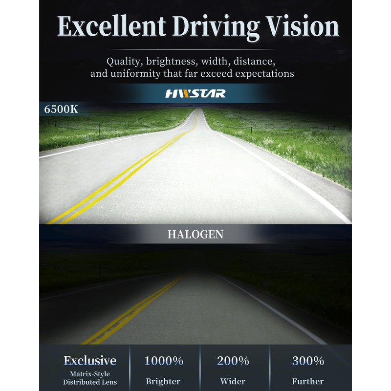 - Stable illuminance: HWSTAR h6054 LED headlight uses the newest high-quality chips; Unique anti-aging circuit and more effective heat dissipation design ensure that the illuminance will not attenuate, making it as bright as the brand new even after years