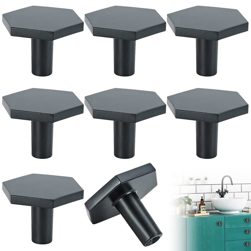 HWTONG 8 Pieces Furniture Knobs Hexagon - Cabinet Knobs, Zinc Alloy Door Knobs, for Kitchen Cabinets, Drawer Knobs, Interior Cabinets (Black)