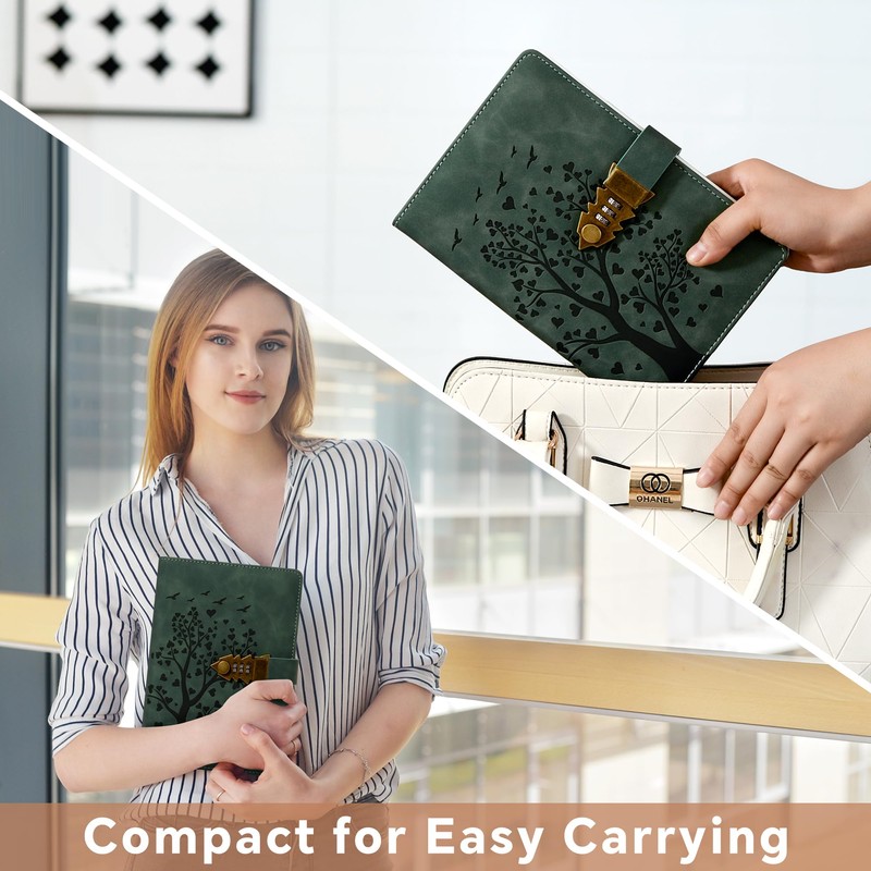 HwxBen Heart Shaped Tree Diary with Lock - 244 Pages, A5 (5.8 x 8.4 inches), Sea Green Journal for Girls and Women Aged 8 to 12 Years as well as Teens, Notebook with Pen and Bookmark.