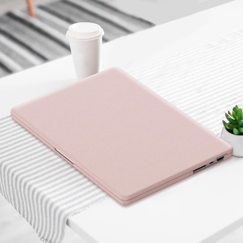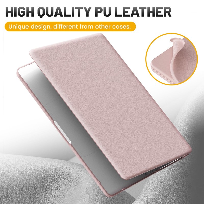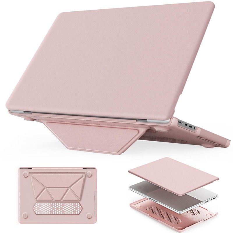HXCASEAC Case Compatible with MacBook Pro 14 inch Case 2024 2023 2022 2021 with Foldable Stand, Anti-Scratching Protective Cover (M4 M3 M2 M1) A3401 A3112 A2918 A2992 A2779 A2442 PU Leather, Pink