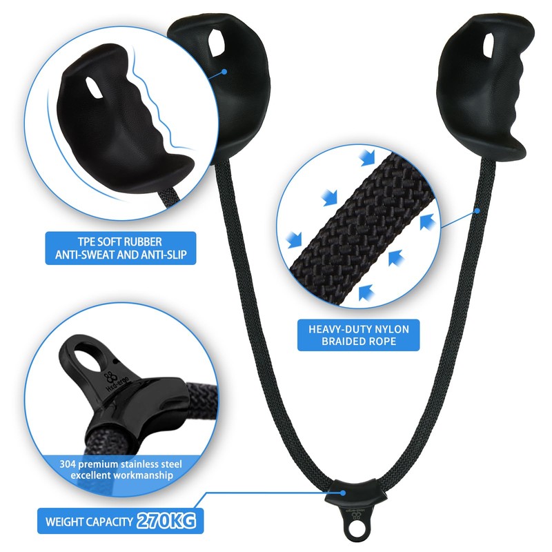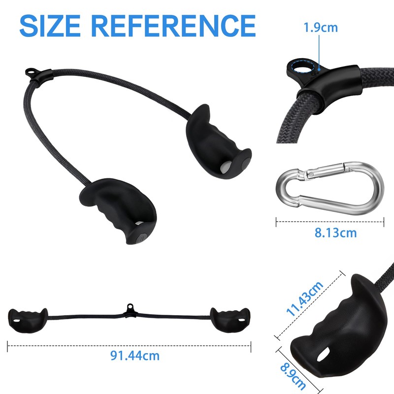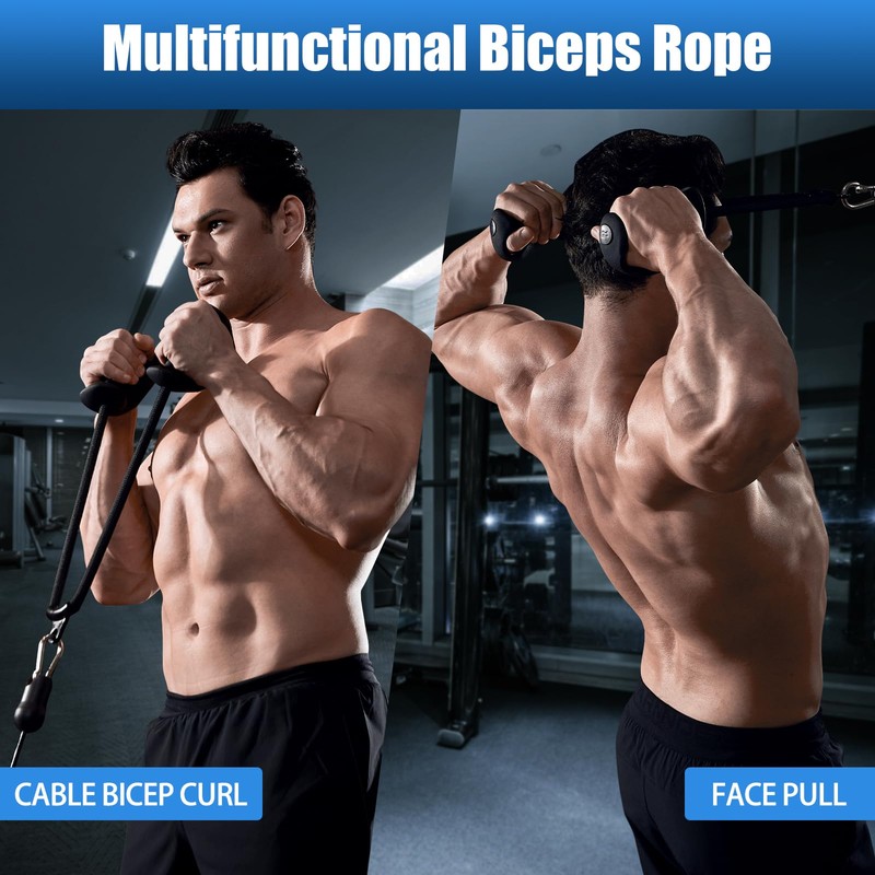 - Non-slip and sweat-proof: the bicep rope handles are made of soft TPE rubber for more slip resistance and sweat resistance, which reduces hand friction and increases comfort. The buckle of the bicep rope is made of 304 steel, a reinforced nylon braided rope to ensure strength and durability.