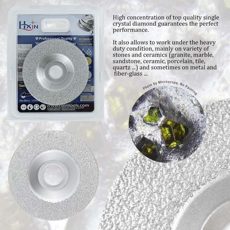 - With our advanced vacuum brazed diamond technology, the HXIN diamond polishing disc provides an extended lifespan and high grindingg/profiling efficiency, offering great versatility and abrasion resistance.