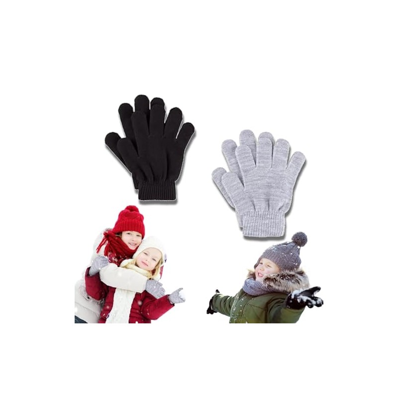 HXLJHALG 2Pairs Kids Gloves for Kids Age 6-12 Years, Winter Warm Magic Gloves Children Stretchy Warm Gloves Knit for Boys and Girls (Black Grey)