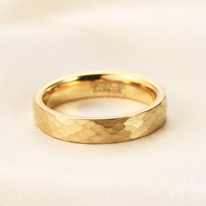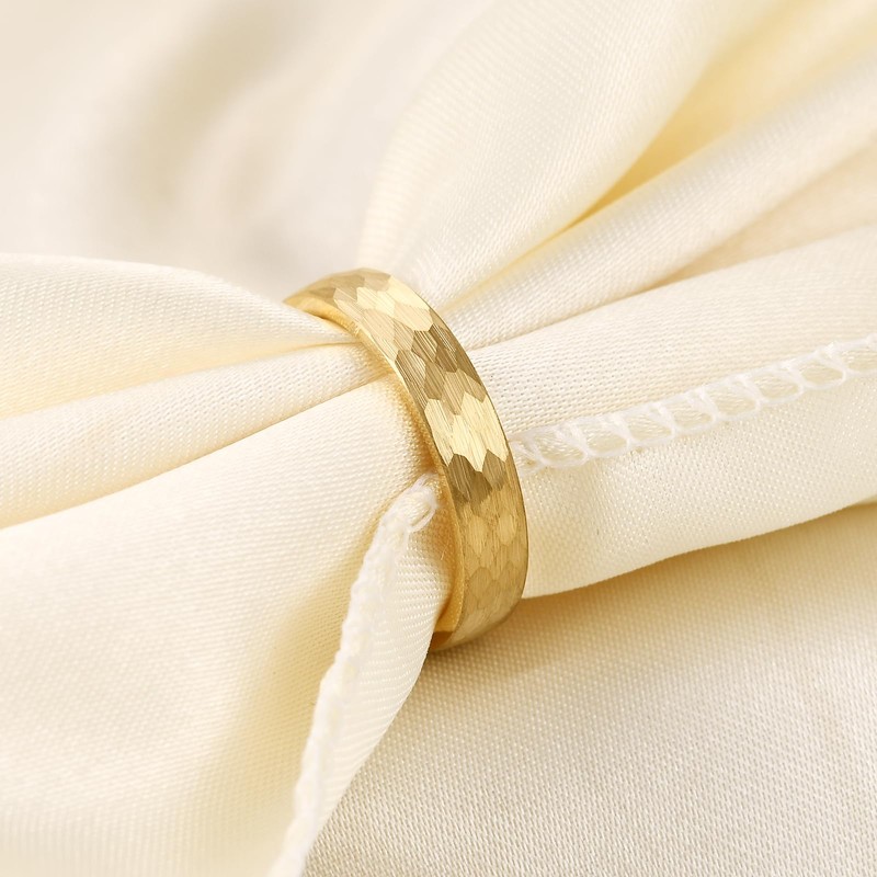 HXNIBATSAR 4mm 6mm Hammered Tungsten Carbide Wedding Ring For Men Women Black/Silver/Gold Dome Surface Matte Brushed Finish Comfort Fit Size 6-12 (4mm-Gold, 8)