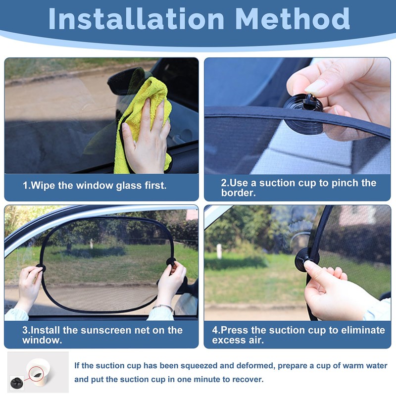 - Schnelle InstallationDie Sonnenblende kommt mit 10 Saugn?pfen. Damit kann die Sonnenblende fest an der Autoscheibe befestigt werden, ohne dass Sie sich Sorgen machen mssen, dass sie herunterf?llt. Sie k?nnen die Sonnenblende in Sekundenschnelle installieren oder entfernen.