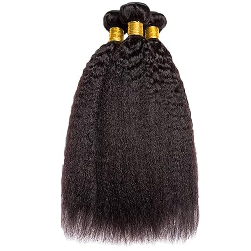 Hxxcoup Bundles Human Hair Bundles Kinky Straight Human Hair Brazilian Real Hair Wefts Real Hair Natural Black Double Weft 100 g/pc 300 g Total 100% Brazilian Remy Hair 28 30 32 Inches