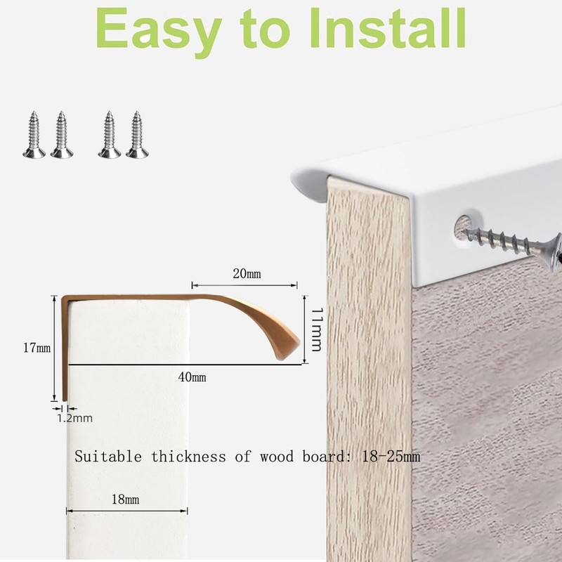 - Modern design: the finger-side handle has a simple and beautiful shape, the bevelled edges and rounded corners do not hurt your hands and the handle feels comfortable. With this modern handle, you can use cabinets, cupboards, wine cabinets, drawers, bathroom cabinets, wardrobes, etc.